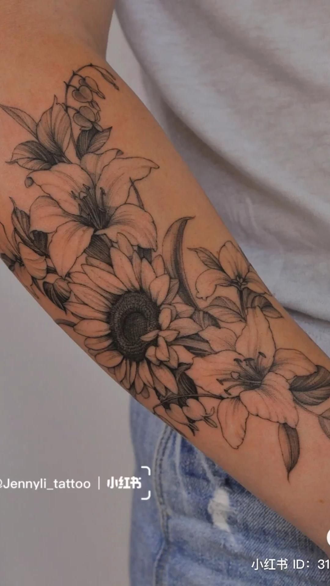 #Detailed #sunflower #Lily #tattoo